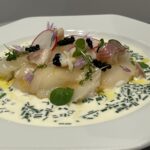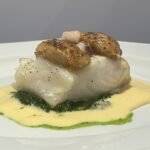 Zeeduivel op een romig bloemkoolzalfje met steppegras en Noilly Prat saus