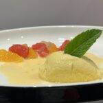 Tarte tatin van mango met gemarineerde sinaasappel en limoncello mousse