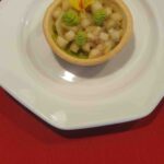 Amuse van witlof op rijstblad en een gevulde tartelette