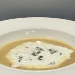 Knolselderie met ravioli van champignons, foyotsaus, walnoten en Parmezaan